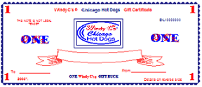 Windy C's® Chicago Hot Dogs Gift Certificates in $10.00 books